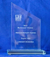 Reviewer's Choice Award for Harlequin Romantic Suspense for 2013, BEYOND VALOR, Februrary, 2013, military suspense romance