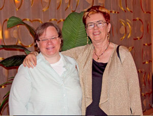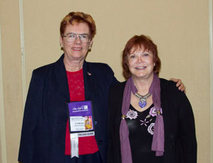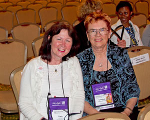 Tara Gavin, Executive Senior Editor, Harlequin and right, Lindsay McKenna, US Navy, ROMVET, sitting with her editor at the Awards ceremony at the RT Booklover’s Conference.
